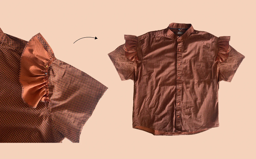 Este timpul să pornești într-o nouă aventură! Găsește o cămașă mare și hai să o transformăm într-o cămașă drăguță, cu volane.