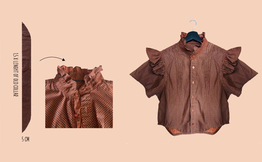 Pentru a face un guler cu volan, folosește gulerul vechi pe care l-ai îndepărtat.