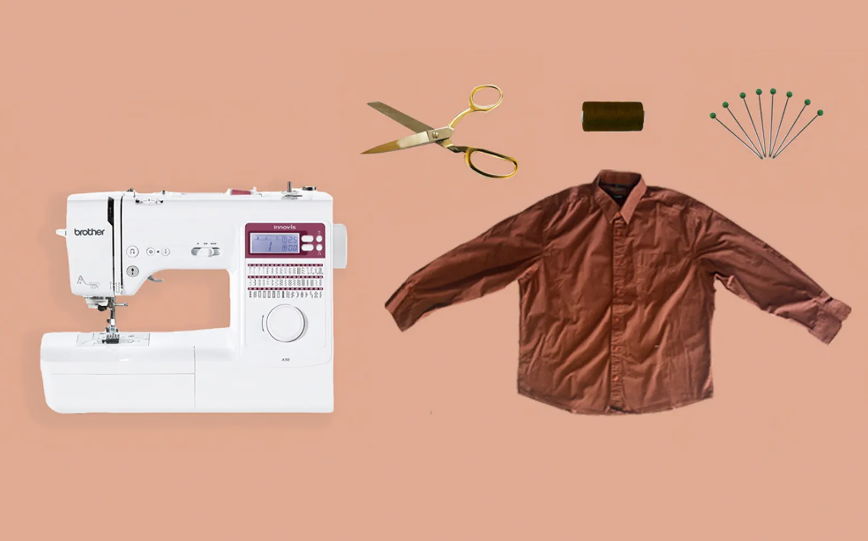 În loc să cumperi o cămașă nouă, supradimensionată pentru acest proiect, de ce să nu faci o percheziție în garderoba soțului tău? Reciclarea hainelor este o modalitate mult mai durabilă de a-ți actualiza garderoba. Nu vă fie teamă, vă vom arăta cum să desfaceti o cămașă supradimensionată și să o coaseți în ceva nou.