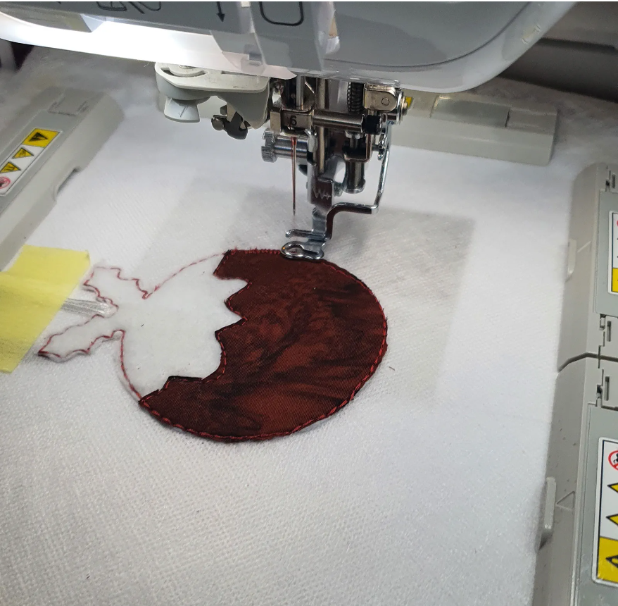 Coaseți pasul 1, un contur al budincii de Crăciun, folosind firul de culoare maro (nu uitați să folosiți fir de aceeași culoare pe bobină). Scoate-ți ghergheful din mașină.