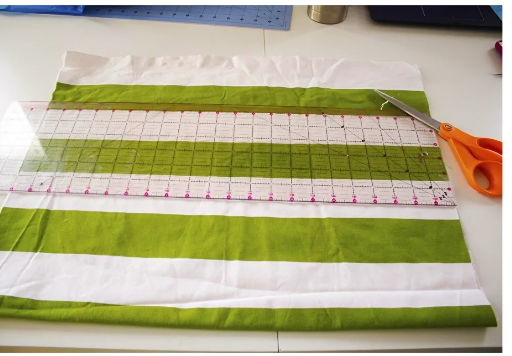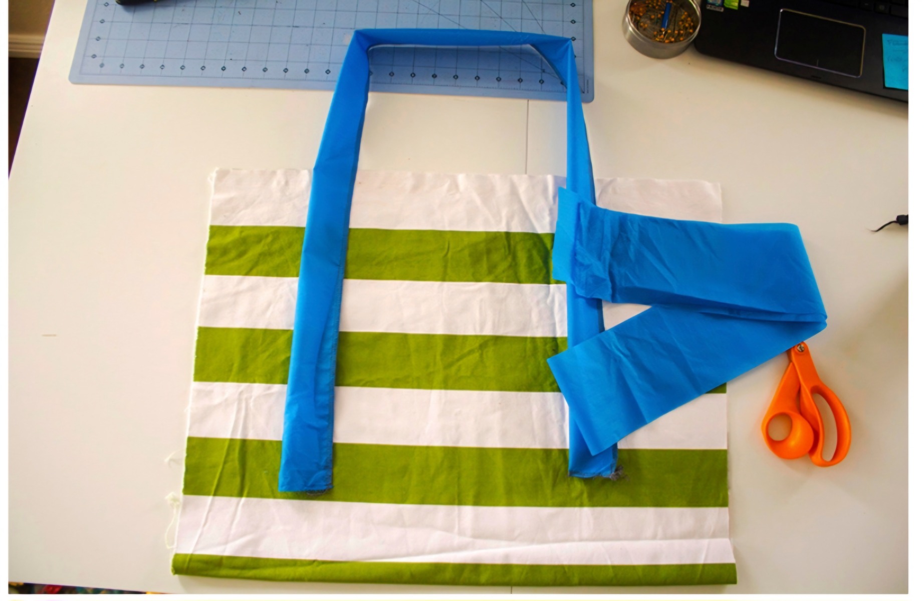 - Corp geantă: Tăiați pânza la dimensiunile 22"x34". Veți plia acest material în jumătate.
