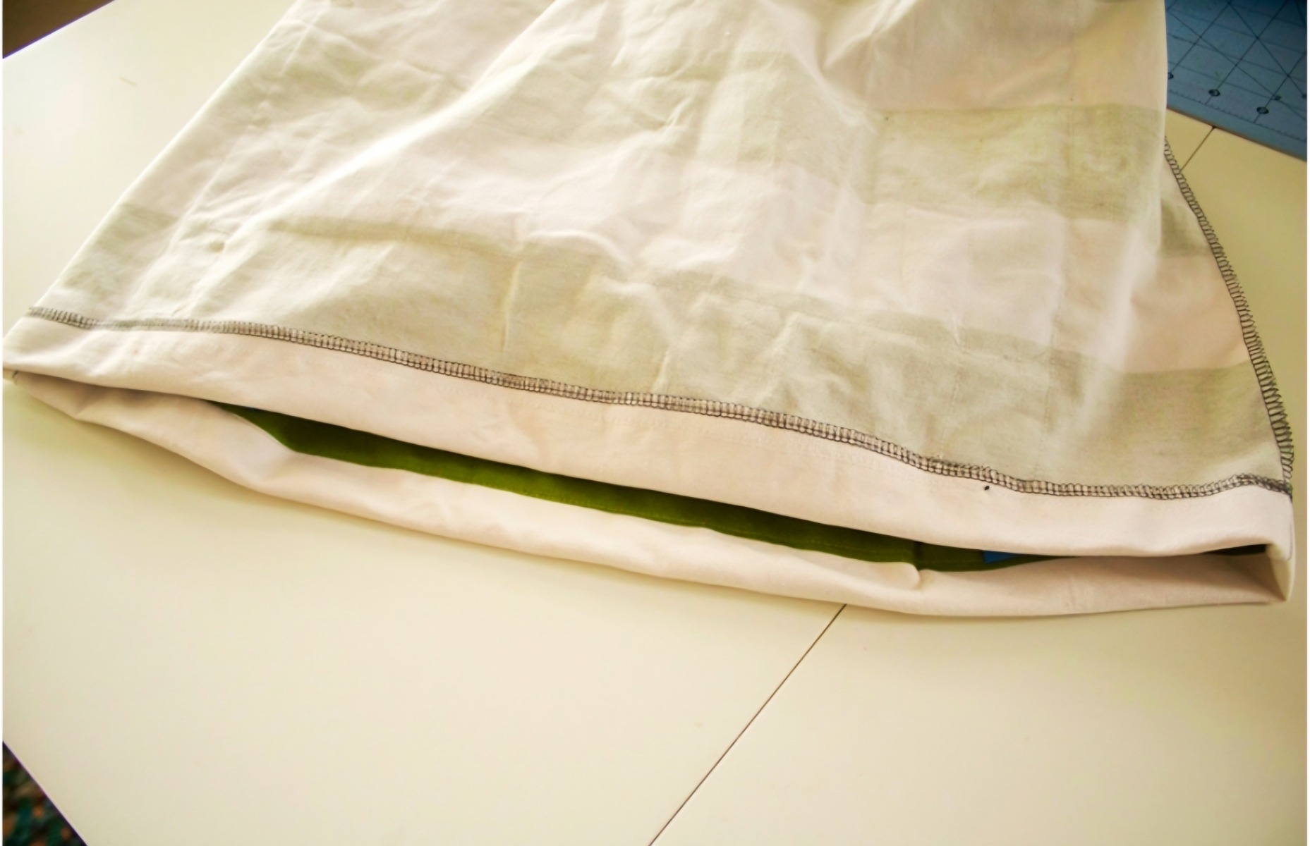 Terminați marginea superioară cu un șurub, apoi pliați peste 1" și coaseți în jurul tivului.